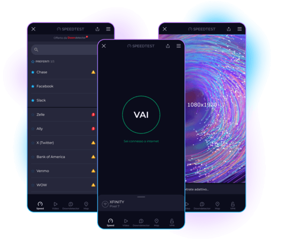 La missione di Speedtest by Ookla® è rendere Internet più veloce fornendo dati e approfondimenti sulla velocità Internet reale. Con miliardi di test eseguiti in tutto il mondo, veniamo in tuo aiuto con app per i dispositivi che usi di più.